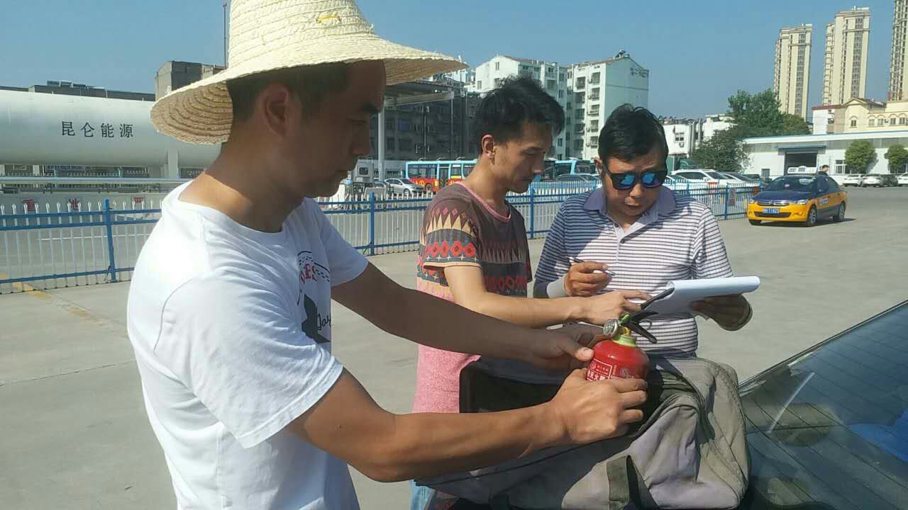 重點檢查車輛是否漏氣,電路和滅火器。對駕駛員私自改裝進行整改。要求駕駛員認真學習公司制定的《出租汽車駕駛員消防安全須知》并簽字。在6月安全生產(chǎn)月已經(jīng)完成的消防安全培訓及演練的基礎上,進一步加強駕駛員消防安全意識,強化駕駛員發(fā)生車輛火災的應急自救能力。