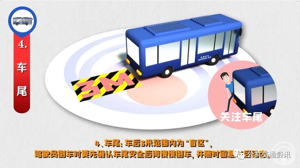 4、車尾:車后3米范圍內(nèi)為“盲區(qū)”,駕駛員倒車時要先確認車尾安全后再慢慢倒車,并隨時留意車后動態(tài)。