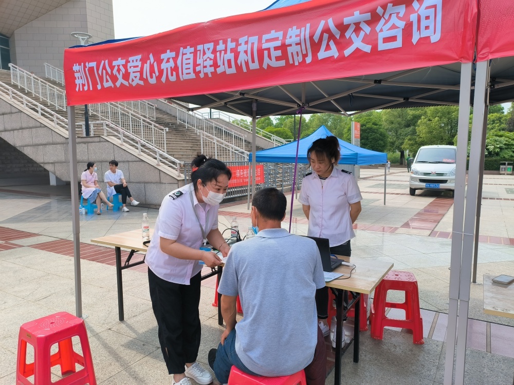 5月20日,荊門市殘疾人聯(lián)合會(huì)在荊門體育文化中心舉辦殘疾人專場(chǎng)招聘會(huì)。市公交集團(tuán)營(yíng)業(yè)中心組織工作人員在活動(dòng)現(xiàn)場(chǎng)設(shè)立臨時(shí)愛(ài)心充值驛站,為前來(lái)參加活動(dòng)的殘疾朋友和其它市民朋友分別提供愛(ài)心卡咨詢、信息登記、年審、掛失和公交IC卡新辦、充值、年審、掛失等服務(wù),同時(shí),積極宣傳推廣荊門公交微信公眾號(hào),方便市民查詢公交咨詢,體驗(yàn)實(shí)時(shí)公交,讓市民告別等車焦慮,從容出行。