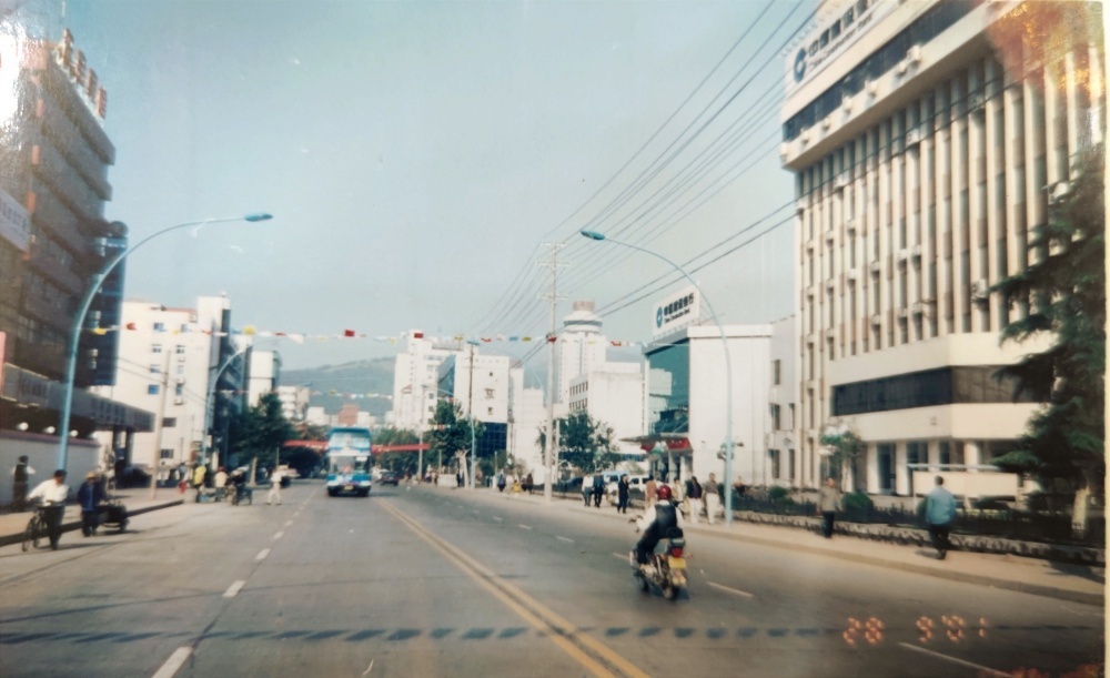 ▲80年代末,荊門市長(zhǎng)寧大道街景圖。荊門公交集團(tuán)總公司(舊址)位于長(zhǎng)寧大道西側(cè)。當(dāng)年總公司院內(nèi)建有辦公樓、停車場(chǎng)、機(jī)修車間、機(jī)加車間、油庫(kù)、倉(cāng)庫(kù)。