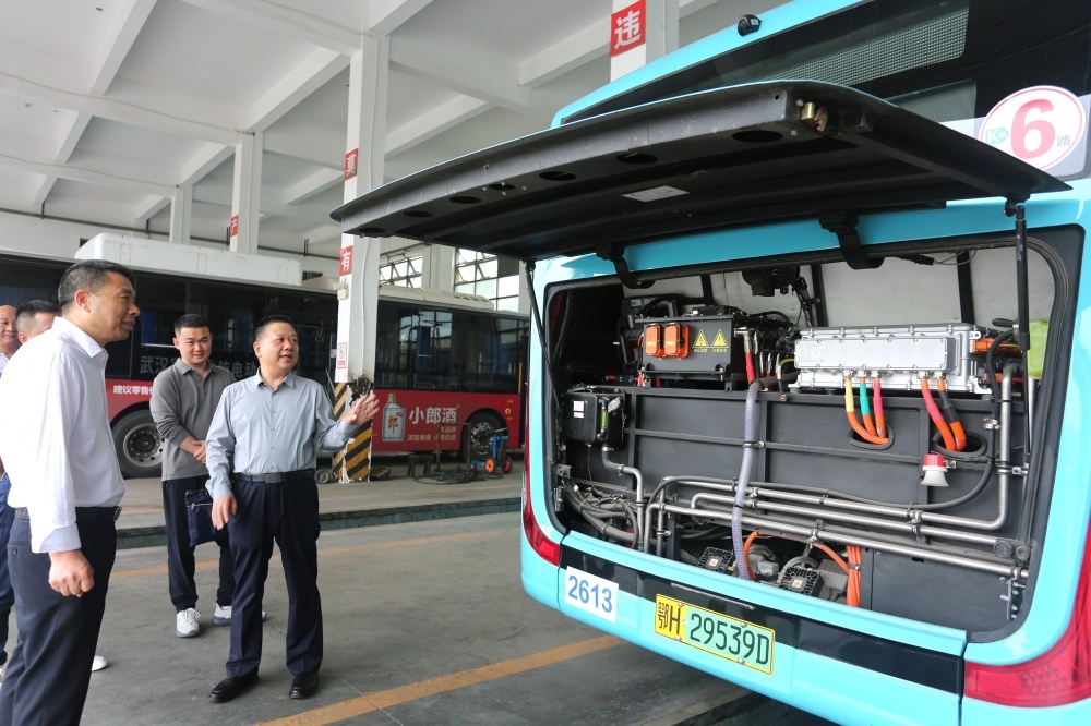 ▲市政府國資委副主任鄧興權(quán)(右一)到市公交集團安全檢查
