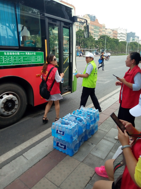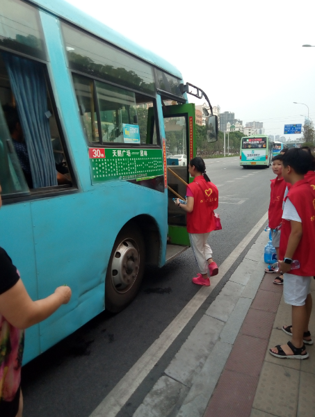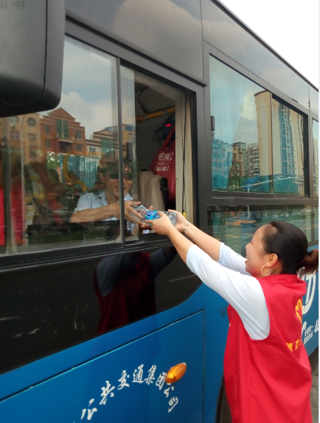 掇刀區(qū)義工聯(lián)協(xié)同公交志愿者為公交司機送清涼活動