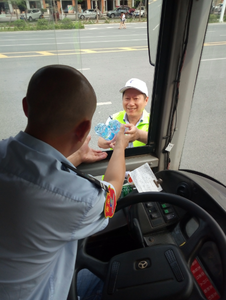 “目前還有小部分線路的公交車是沒有空調(diào)的,就算夏天再熱也得堅持,現(xiàn)在天這么熱,一天下來衣服都不知道要濕多少次。今天有他們給我們送來的礦泉水,讓我們司機在這夏日里體會到了一絲清涼,真的很感謝他們。有了他們的支持和理解,我們更要做好本職工作。”公交集團工作人員說。