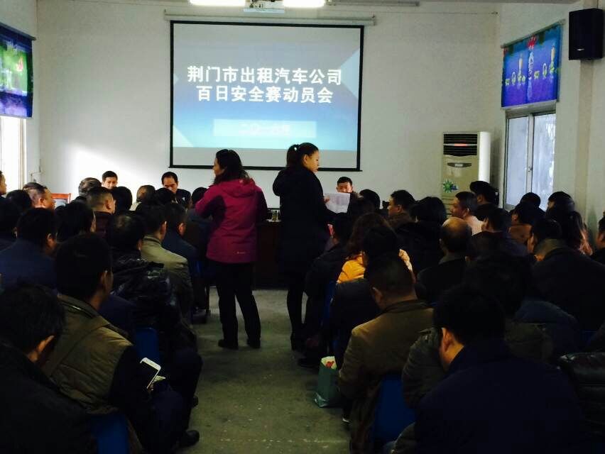 (圖為出租汽車(chē)公司百日安全賽動(dòng)員大會(huì)現(xiàn)場(chǎng))