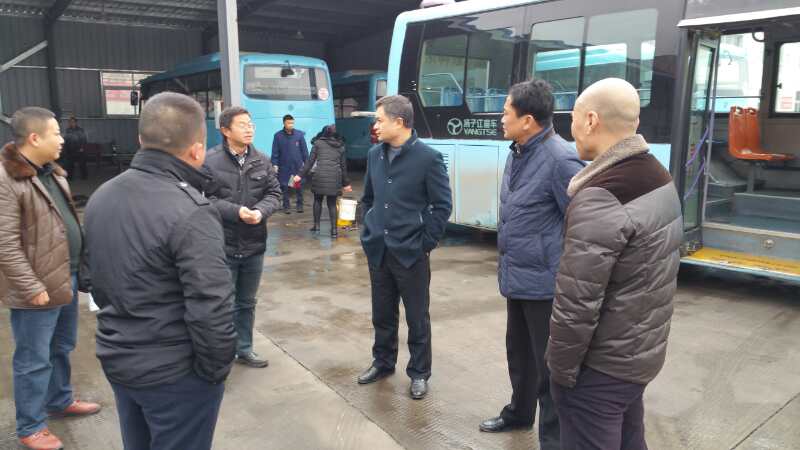 為應(yīng)對冰雪惡劣天氣,確保線路營運車輛安全行車。2016年11月23日下午,荊門公共交通集團公司常務(wù)副總經(jīng)理張國軍、常委委員王群華帶領(lǐng)營運安全部對三個公交營運公司防凍防滑物資準備及當(dāng)天車輛運行情況進行巡查。