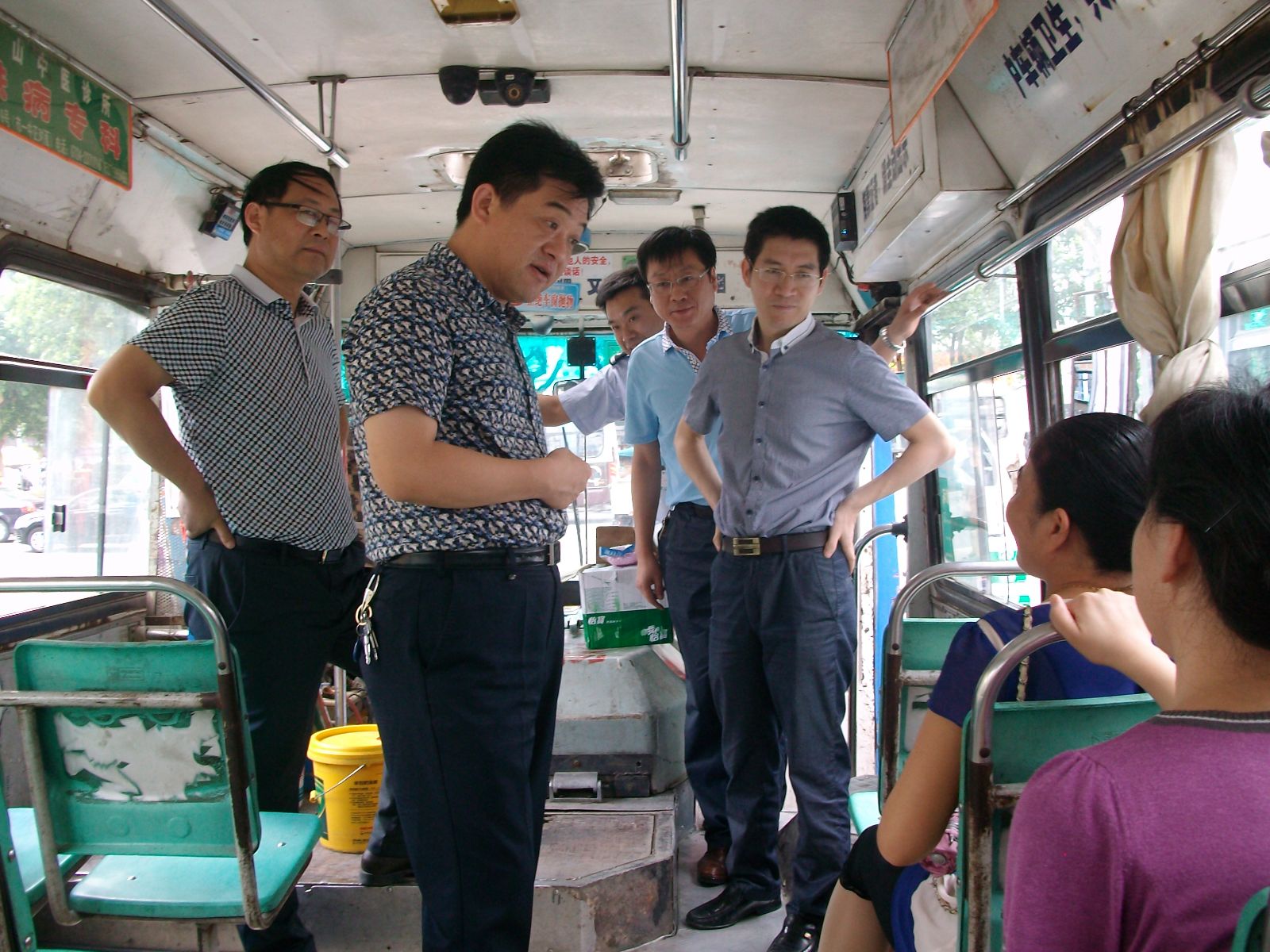 當(dāng)日中午12時(shí),正值高溫時(shí)刻,伍應(yīng)彪等領(lǐng)導(dǎo)冒著炎炎夏日來(lái)到?;圮囌?,看望慰問(wèn)高溫下堅(jiān)守工作崗位的公交職工。在16路、21路、22路線正待發(fā)班的公交車前,伍應(yīng)彪上車與一線駕駛員親切握手,詢問(wèn)了解駕駛員們的身體和工作情況,并聽(tīng)取了一公司負(fù)責(zé)人對(duì)改善職工們的工作和休息環(huán)境等工作匯報(bào)。在與駕駛員們親切交談中,伍應(yīng)彪親自為駕駛員們送上了礦泉水、毛巾、人丹、清涼油等防暑降溫用品。同時(shí),他還向部分乘客征求了改善乘車環(huán)境的意見(jiàn)和建議。