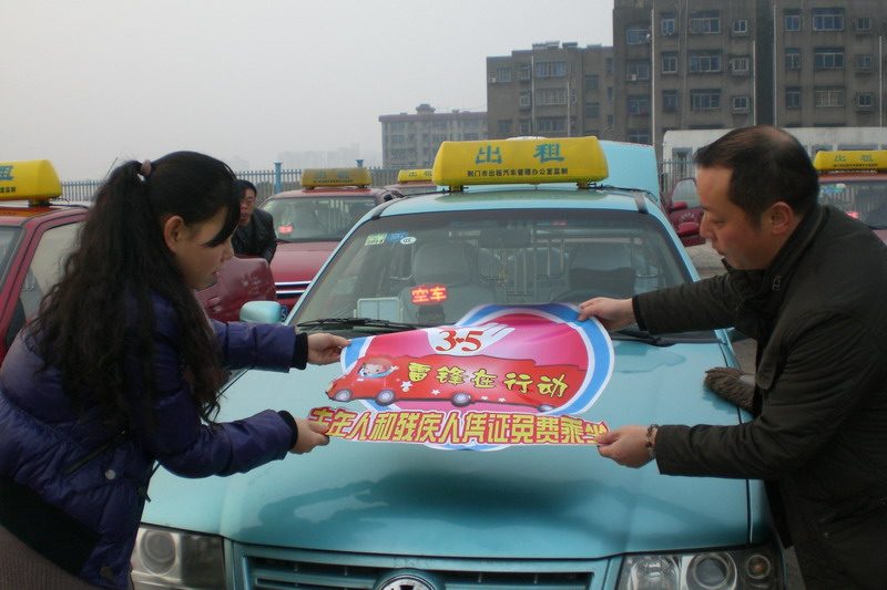 昨日,市出租汽車公司雷鋒車隊(duì)舉行的“雷鋒在行動(dòng)”免費(fèi)接送志愿服務(wù)活動(dòng)如期舉行,40臺(tái)貼有活動(dòng)標(biāo)志的出租汽車在中心城區(qū)大街小巷穿梭,免費(fèi)接送老人、殘疾人及弱勢(shì)群體乘客258人次。