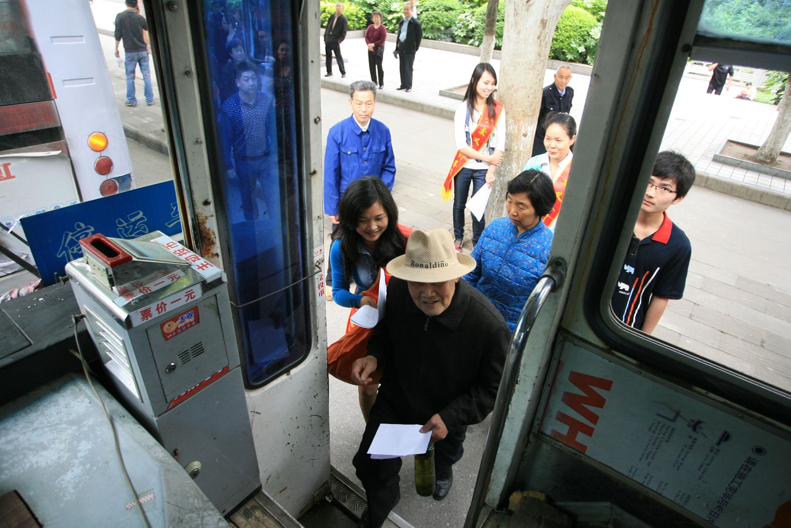 5月15日,荊門公交集團負責營運安全的3名副總經(jīng)理,帶2個營運公司20余名管理人員、以及10名身披綬帶的志愿者引導員在城區(qū)的一醫(yī)、中商、東方百貨、移動公司、汽車站5個公交站點正式啟動“文明進公交”活動。