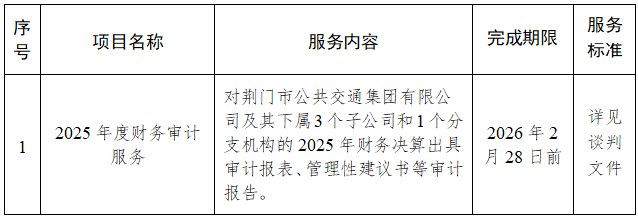 二、項目名稱:荊門市公共交通集團有限公司2025年度財務審計服務項目